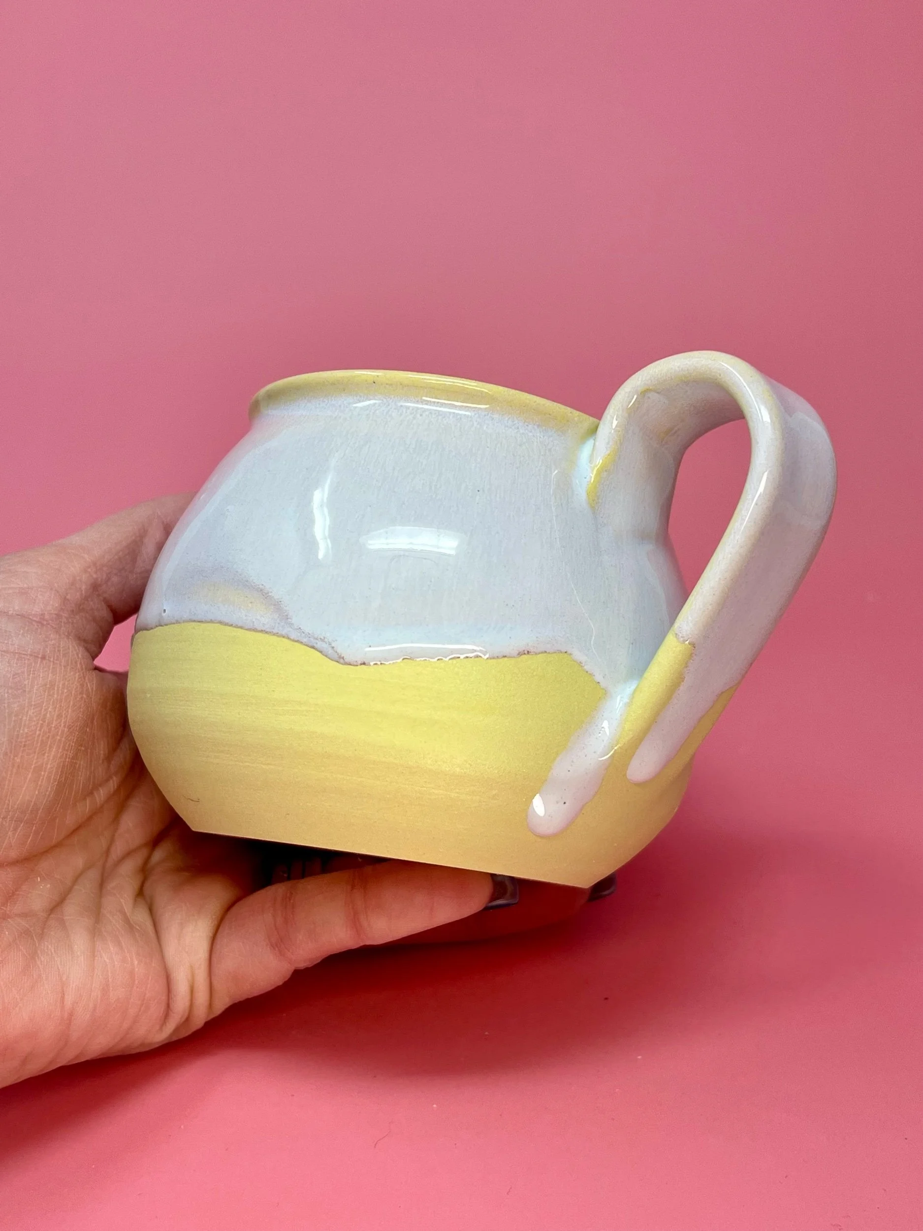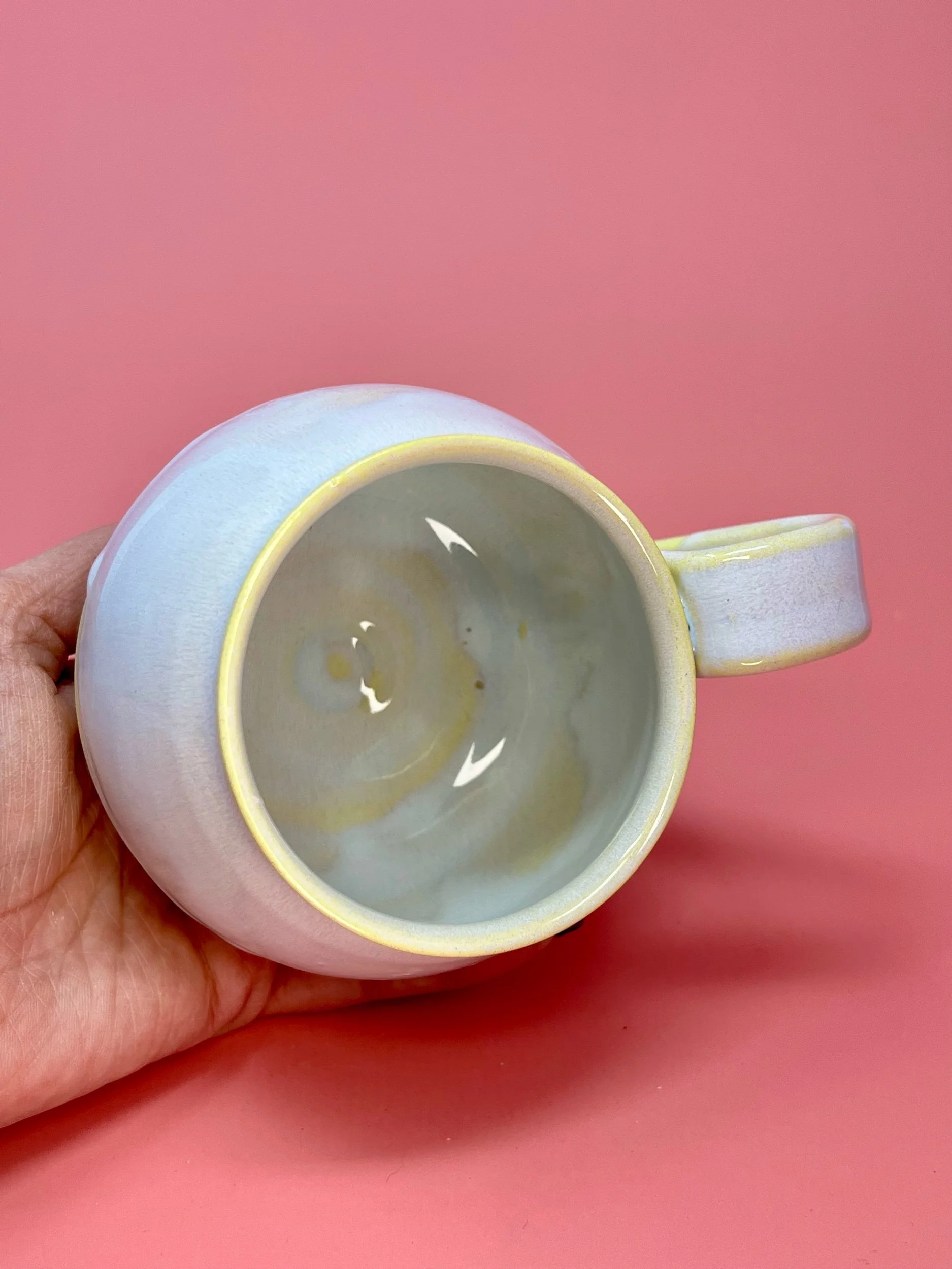 This item holds approximately 12-14oz and is handmade on the pottery wheel from a white porcelain clay. All designs are original hand painted one of a kind designs.
