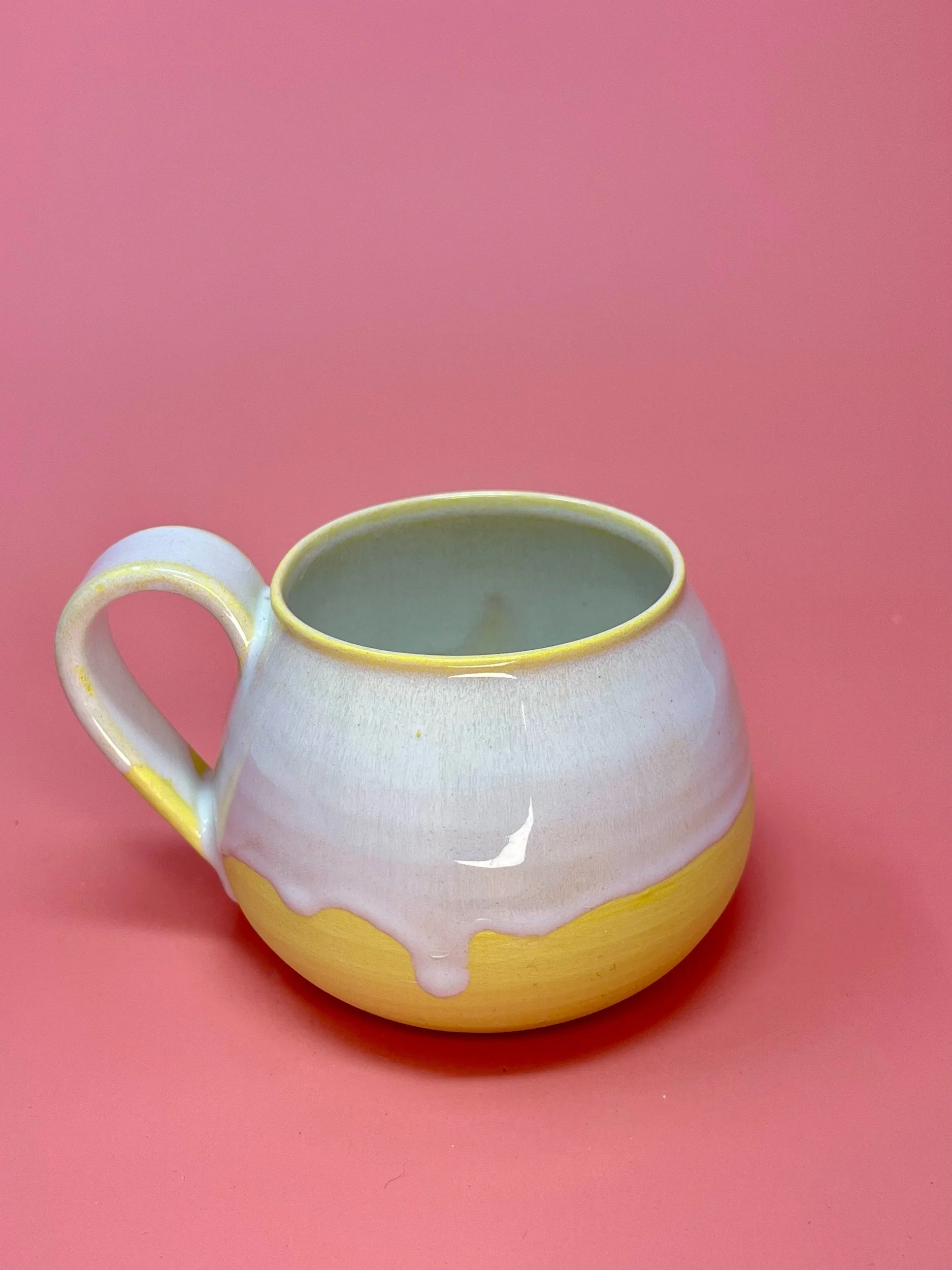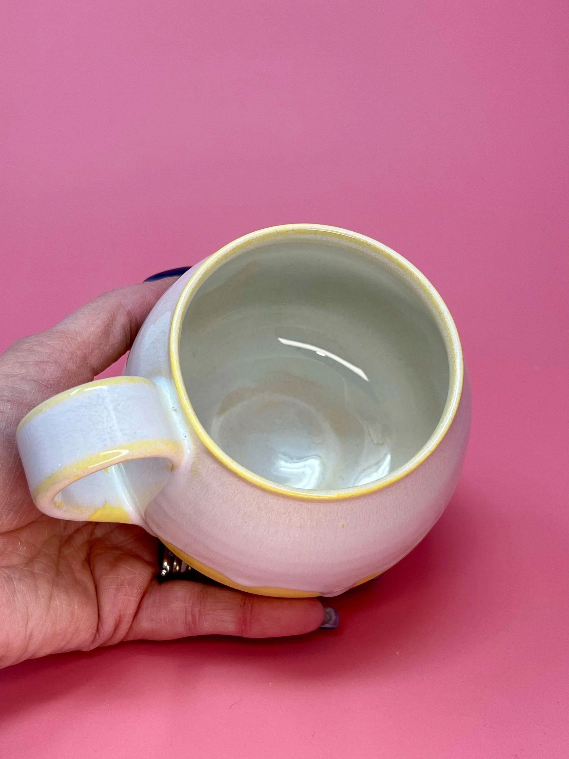 This item holds approximately 12-14oz and is handmade on the pottery wheel from a white porcelain clay. All designs are original hand painted one of a kind designs.