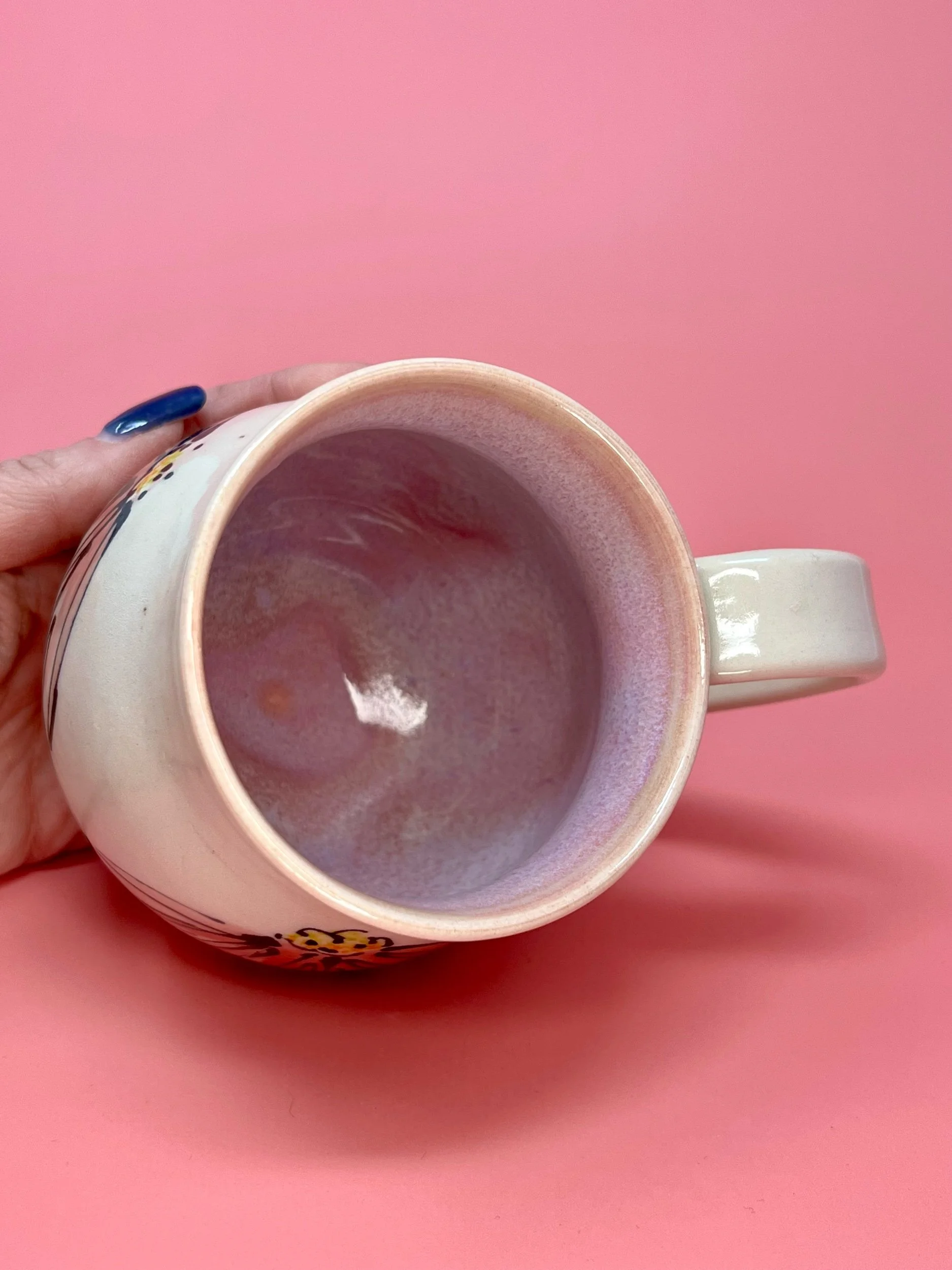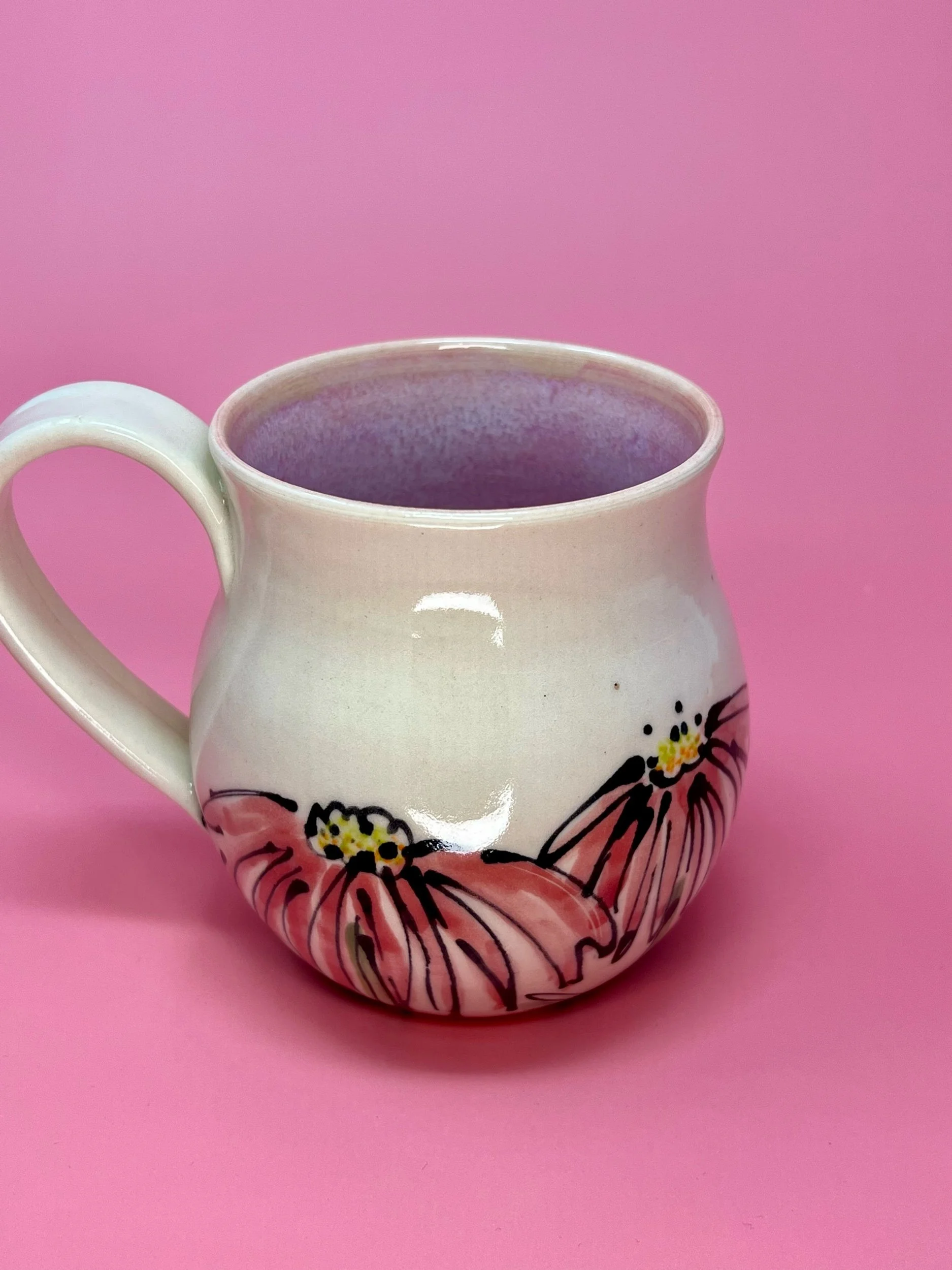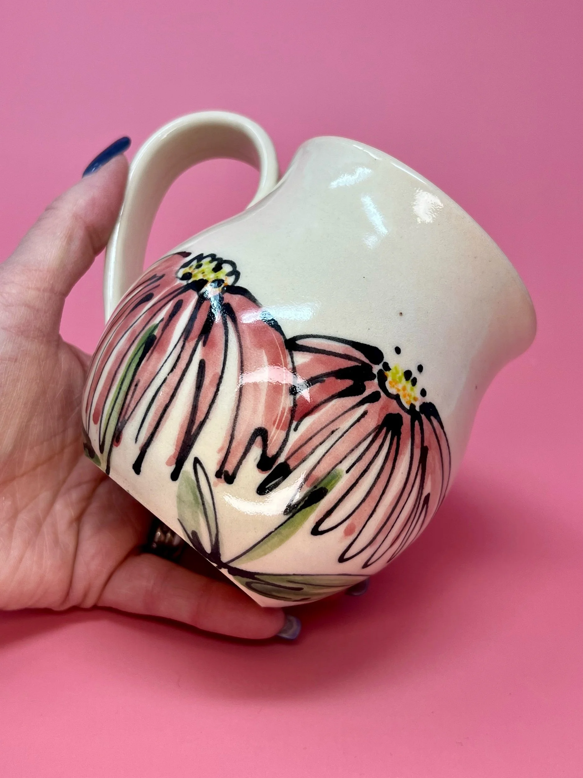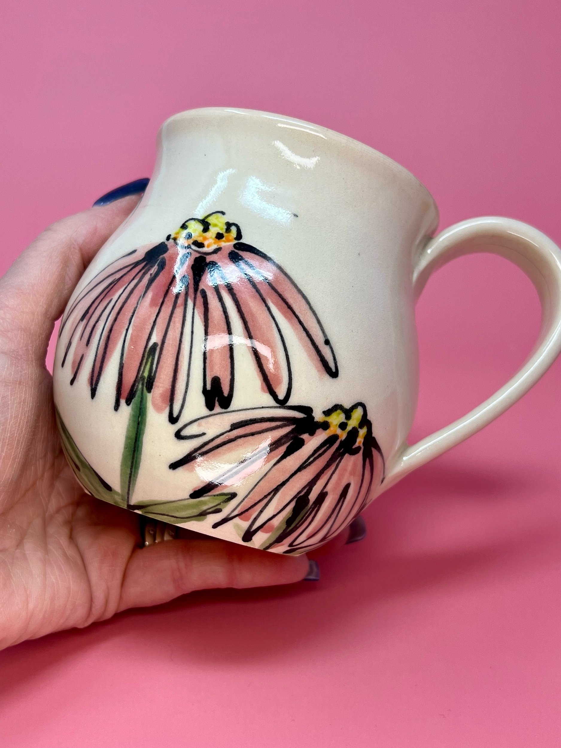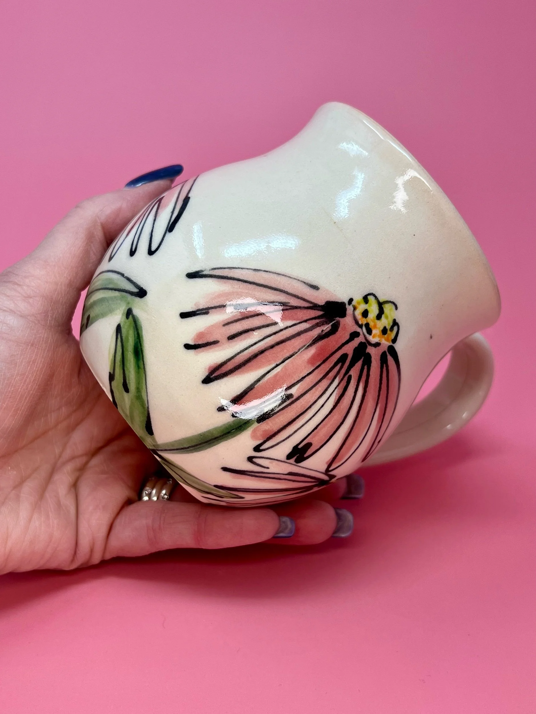 Hand Painted Flora Mug - Pink/Ruby Cone Flowers