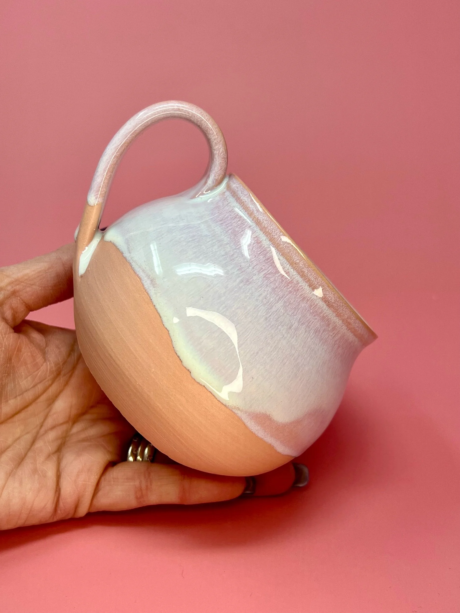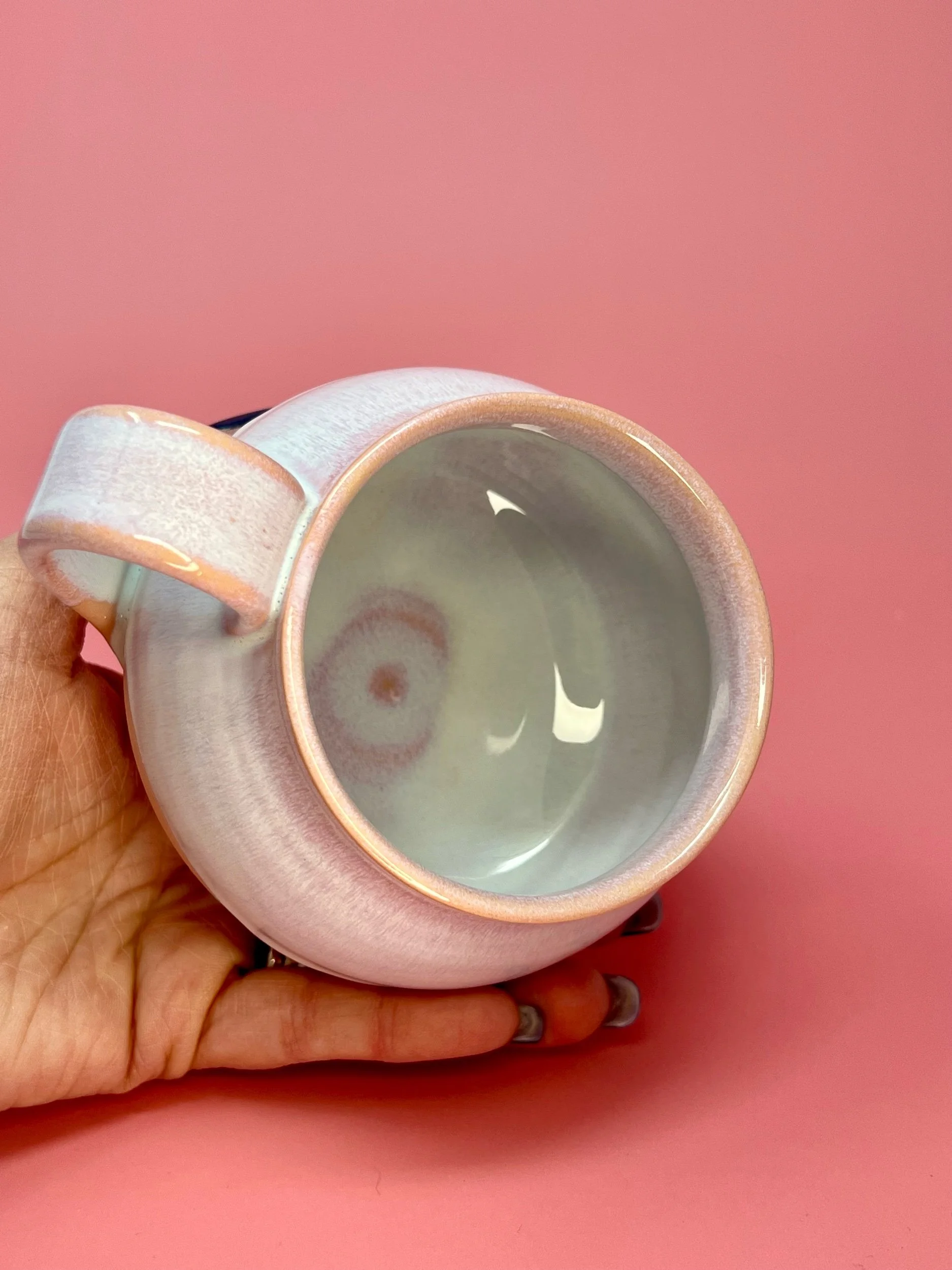 This item holds approximately 12-14oz and is handmade on the pottery wheel from a white porcelain clay. All designs are original hand painted one of a kind designs.