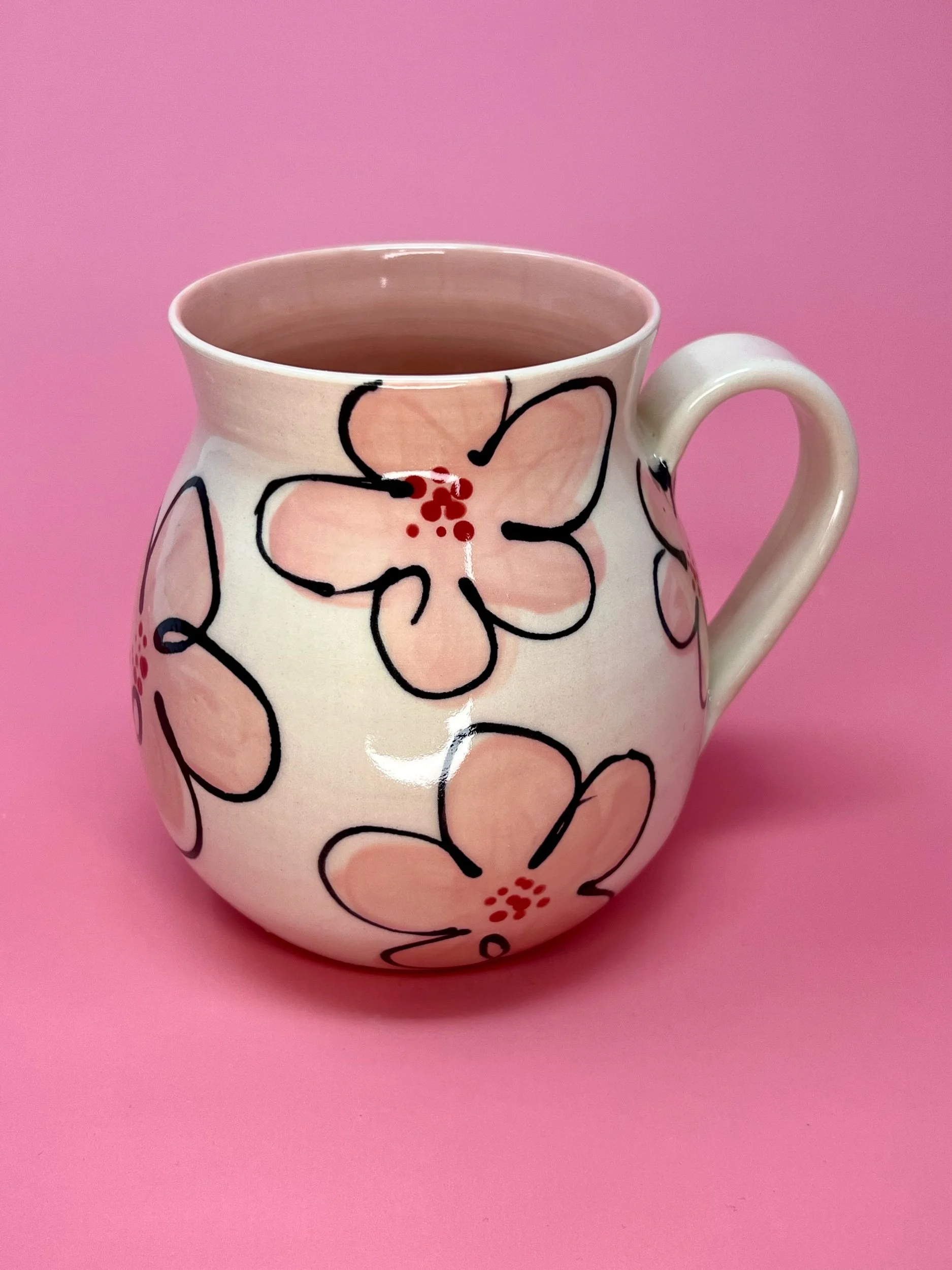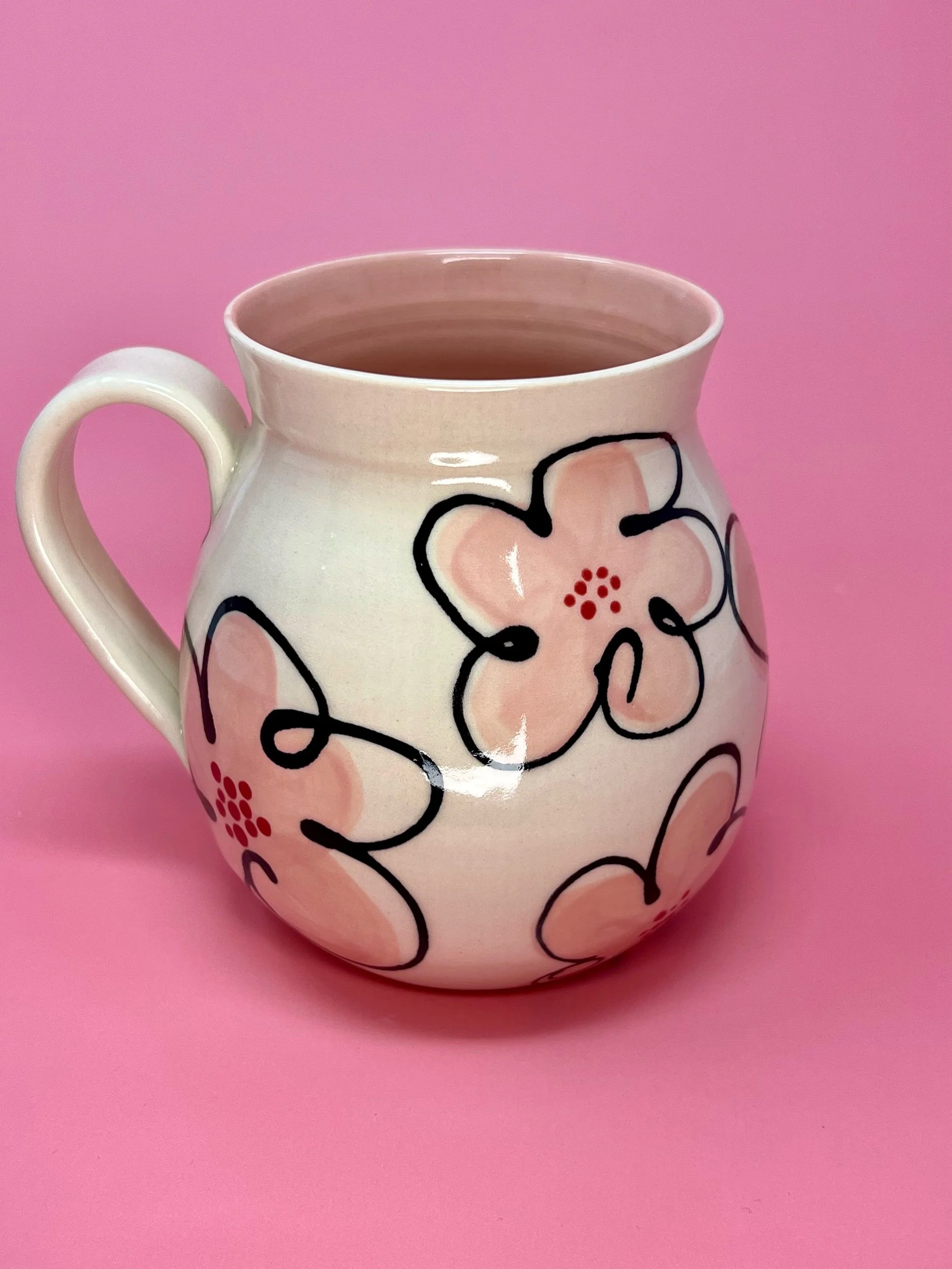 This item holds approximately 20oz and is handmade on the pottery wheel from a white porcelain clay. All Designs are original hand painted one of a kind designs.