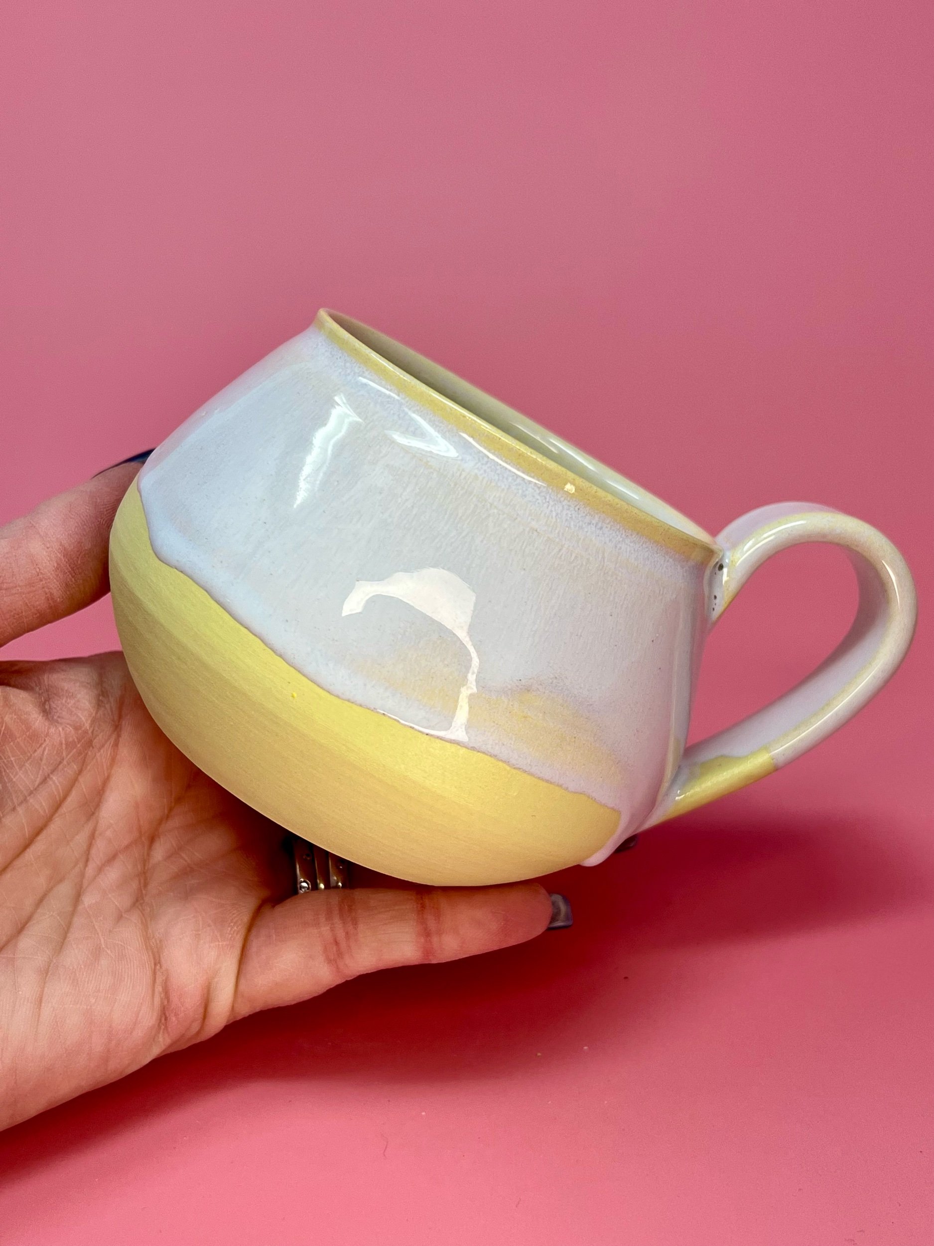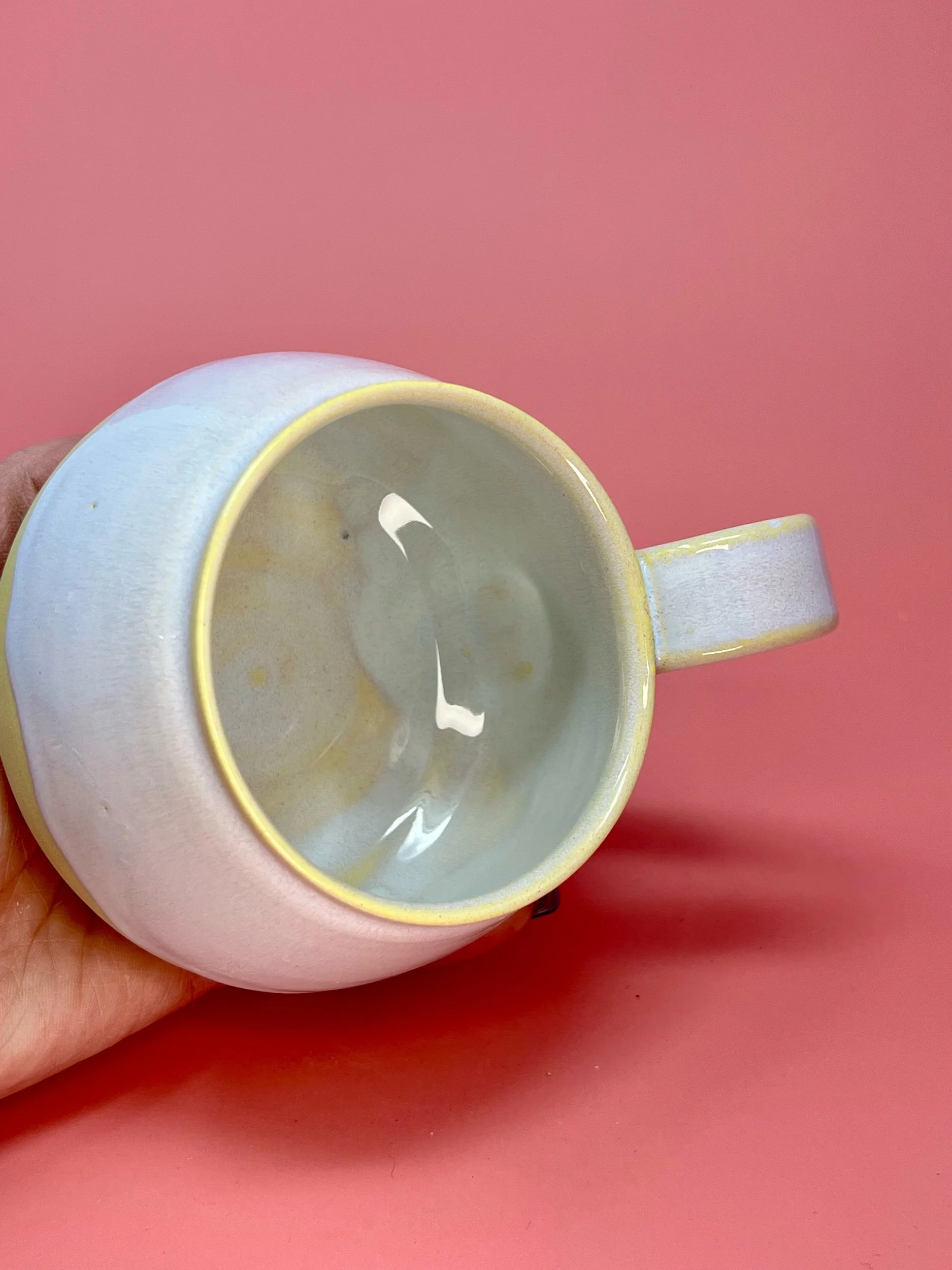 This item holds approximately 12-14oz and is handmade on the pottery wheel from a white porcelain clay. All designs are original hand painted one of a kind designs.